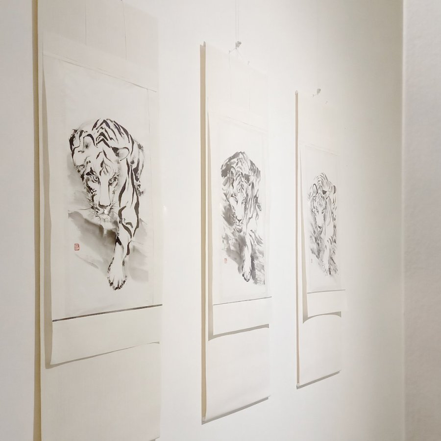 Esta muestra consta de pinturas realizadas bajo las técnicas y conceptos del Sumi e, arte oriental que se vale de tintas sobre papel de arroz.