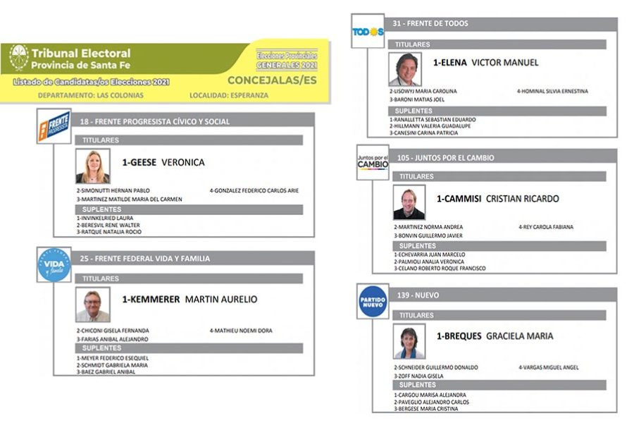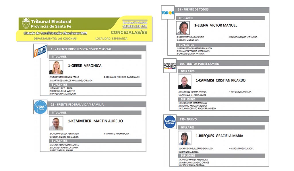 En Esperanza habrá cinco listas para definir cuatro bancas en el Concejo Municipal con mandato entre el 10 de diciembre de 2021 y el 9 de diciembre de 2025.