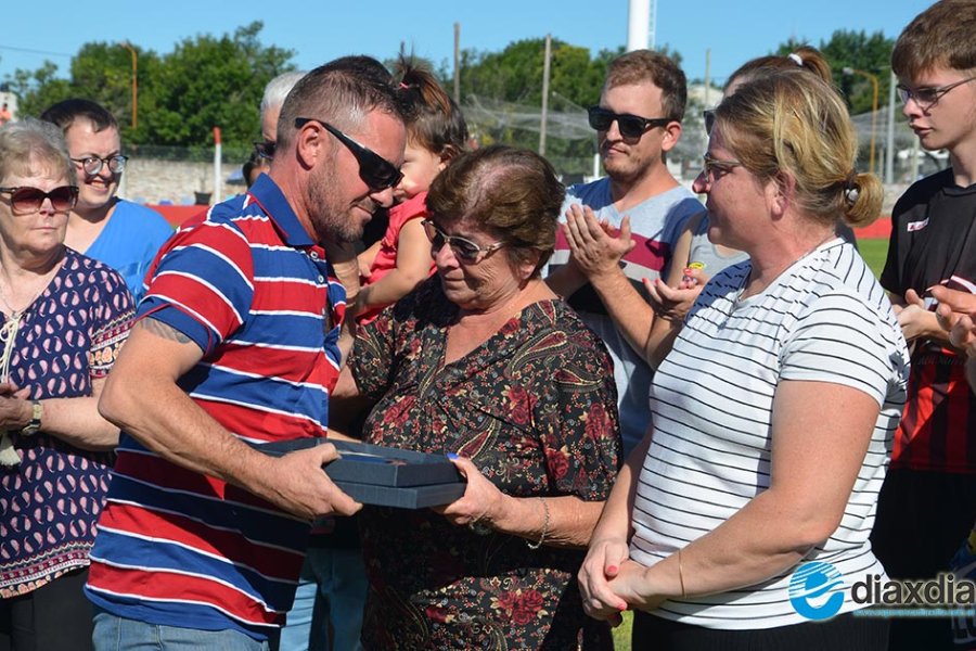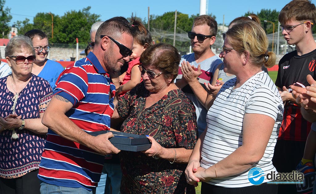 Luego Santillán entregó una plaqueta recordativa a los familiares de Juan quienes emocionados agradecieron el gesto. Más tarde fueron los protagonistas del tradicional "puntapié inicial" del torneo 2022 de la liga.