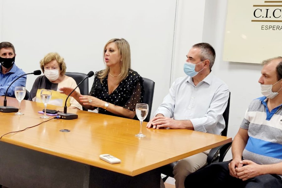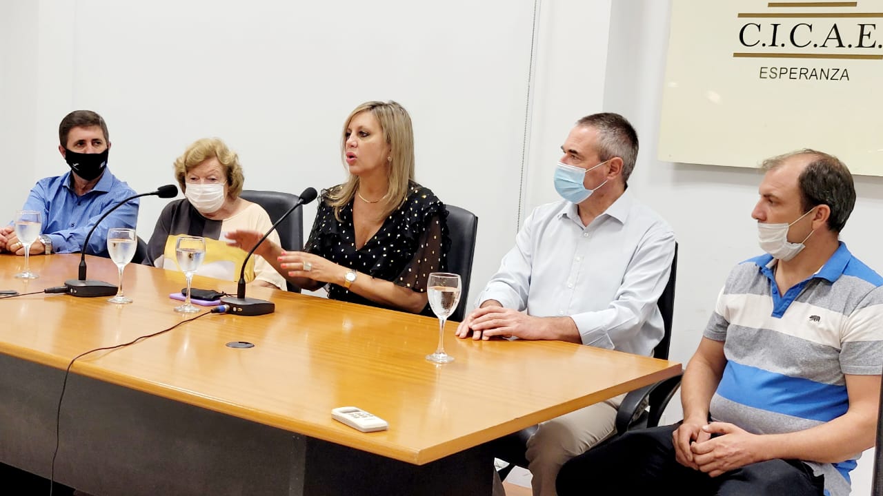 El presidente de la Asociación Civil Agencia para el Desarrollo de Esperanza y la Región (ACADER), Carlos Volpato, y la directora del Banco de Inversión y Comercio Exterior (BICE), María de los Ángeles Sacnun, brindaron detalles del encuentro de trabajo de este miércoles en Esperanza.