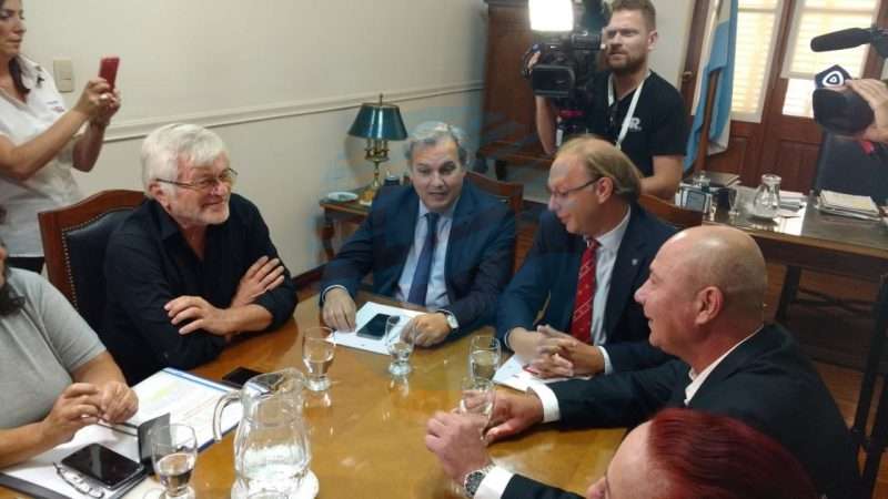 Del encuentro, llevado a cabo en Casa de Gobierno, participaron los ministros de Gobierno y Reforma del Estado, Pablo Farías; el ministro de Economía, Gonzalo Saglione; y los secretarios generales de los gremios UPCN, Jorge Molina; y ATE, Jorge Hoffmann, entre otras autoridades.