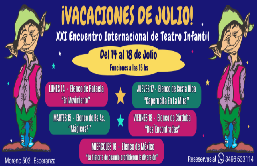 Será del lunes 14 al viernes 18 de julio, con funciones a las 15 horas. Se presentarán elencos de Buenos Aires, Córdoba, Rafaela, Costa Rica y México.
