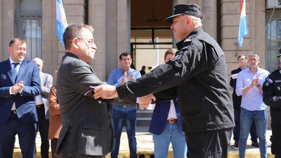 El flamante ministro de Seguridad de la provincia Rubén Rimoldi, visitó Esperanza, saludó a las autoridades policiales y políticas pero no participó del acto de entrega de patrulleros que se realizó al mediodía frente a la Unidad Regional XI.