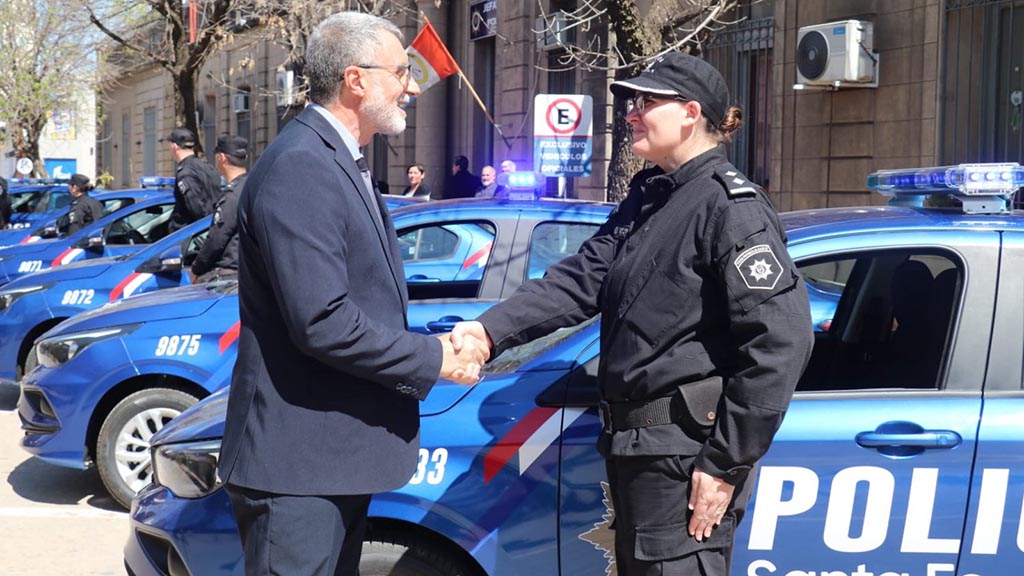 Son automóviles Fiat Cronos cero kilómetro de los cuales dos fueron asignados a Esperanza. Estuvo el Ministro de Seguridad de la Provincia, sólo para las fotos ya que no atendió a la prensa.