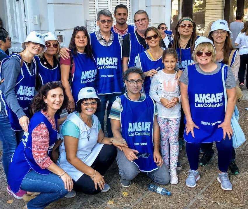 La Seccional Las Colonias de Amsafe se movilizó este martes hasta Santa Fe donde junto al resto de las seccionales de la provincia y el Sindicato Argentino de Docentes Particulares (Sadop) se concentraron frente a la Regional IV para “reclamar por nuestros derechos y llamar la atención del gobierno para que haya un ofrecimiento superador y podamos tener luego un ciclo lectivo normal y para bien de todos los chicos”.