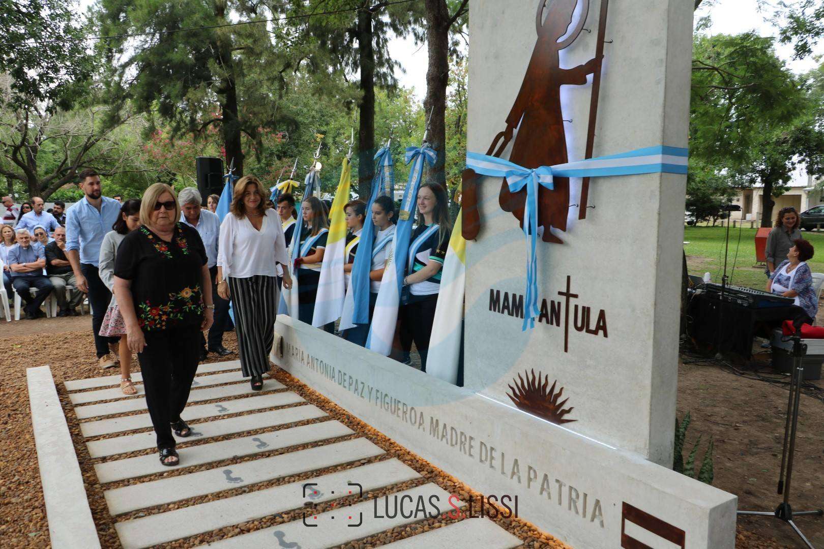 La obra en honor a María Antonia de Paz y Figueroa, "Madre de la Patria”, está ubicada en uno de los parques que se ubican en el cruce de las calles Brigadier Estanislao López (ruta 70) y Emilio Polter.