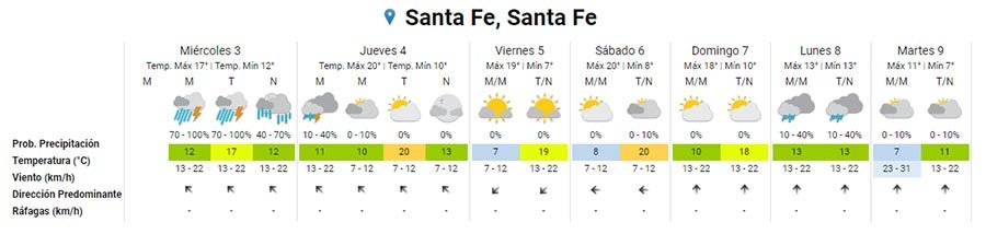 Si bien el departamento Las Colonias no está incluido en el alerta por tormentas fuertes del Servicio Meteorológico Nacional para hoy, se anuncian altas posibilidades de tormentas para la mañana y la tarde de hoy.