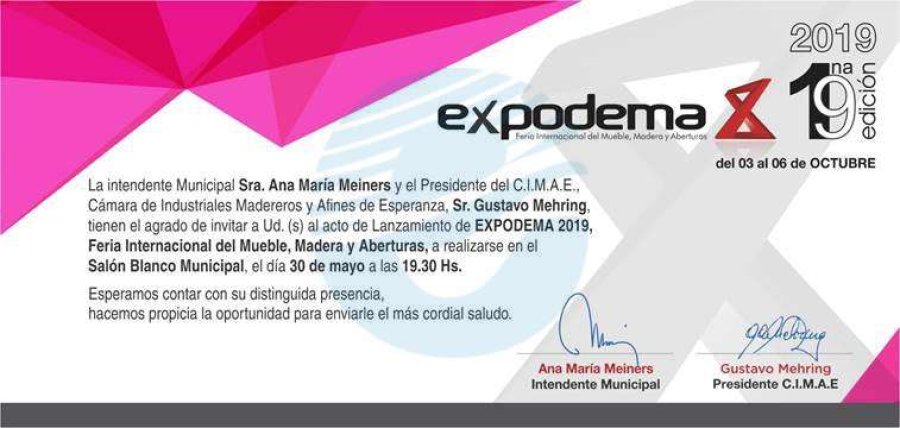 El presidente de la Cámara de Industriales Madereros y Afines de Esperanza, Gustavo Mehring, confirmó que el próximo jueves a las 19:30 en el Salón Blanco Municipal se realizará el acto de lanzamiento de la 19na edición de la Expodema.