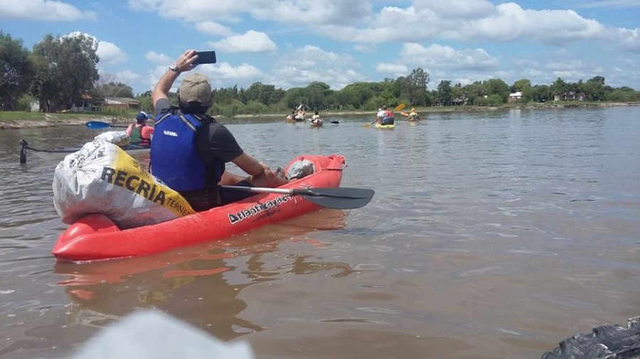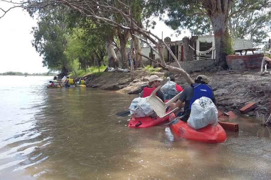 Fue este domingo por la mañana impulsada por un grupo de voluntarios que recorrieron en kayaks, piraguas y caminando unos 10 km de costas del río Salado.