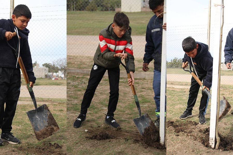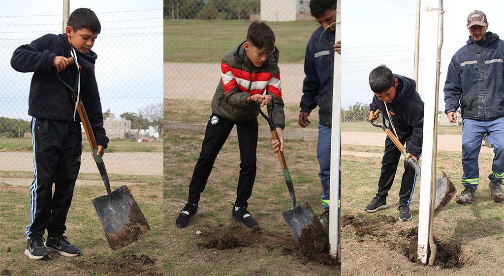 La sub comisión de fútbol infantil de Sportivo del Norte junto a la Secretaria de Servicios Públicos del municipio, plantaron 18 árboles en el perímetro del lado Sur del predio del club, en el sector lindero con calle Alem.