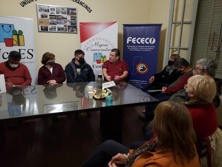 Tras una reunión con los integrantes de la Unión de Comerciantes Esperancinos -UCOEs- Verónica Geese y Hernán Simonutti entendieron que "debemos volver a ser el centro de compras del departamento Las Colonias, y para eso tenemos que pensar la estrategia comercial de la ciudad en sí, en la Marca Ciudad como se le dice, eso es estratégico para reposicionarnos como una ciudad sustentable, trabajadora, moderna y hospitalaria".