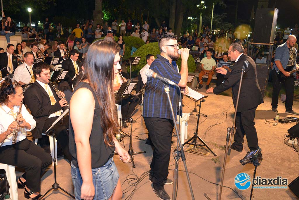 La Banda de Música Municipal bajo la dirección de Marcelo Husser brindó anoche un gran espectáculo en el sector bajo de la Plaza San Martín de Esperanza.