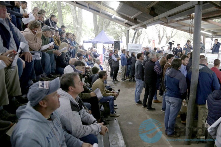 La nota destacada fue la enorme concurrencia de productores, compradores y vendedores de toda la zona que, a pesar del complicado clima que azotó la ciudad de Esperanza este Viernes 12, llenaron la tribuna principal de la feria de la Lehmann, donde acompañaron durante las 3 horas que duró este remate.