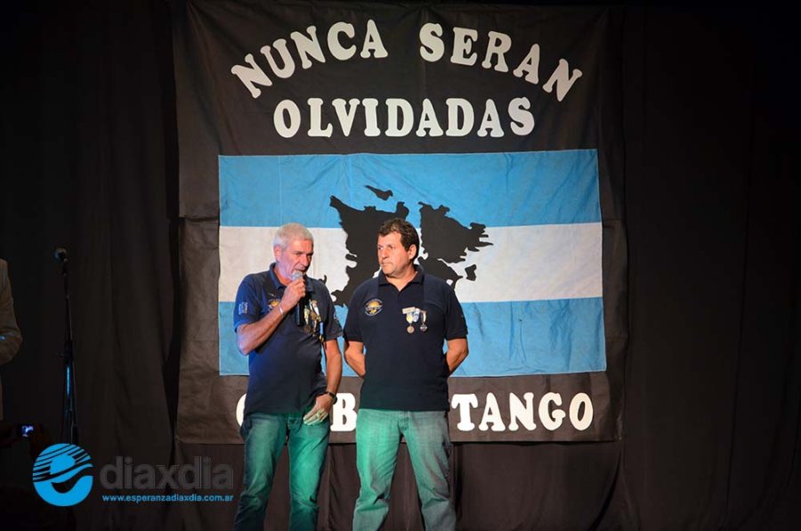 Junto a Sergio Oggioni en el escenario recordaron a los caídos en las islas "ésos son los héroes, nosotros somos ex combatientes" dijo una vez más Omar para recordar luego a sus compañeros Muller y Colombo.