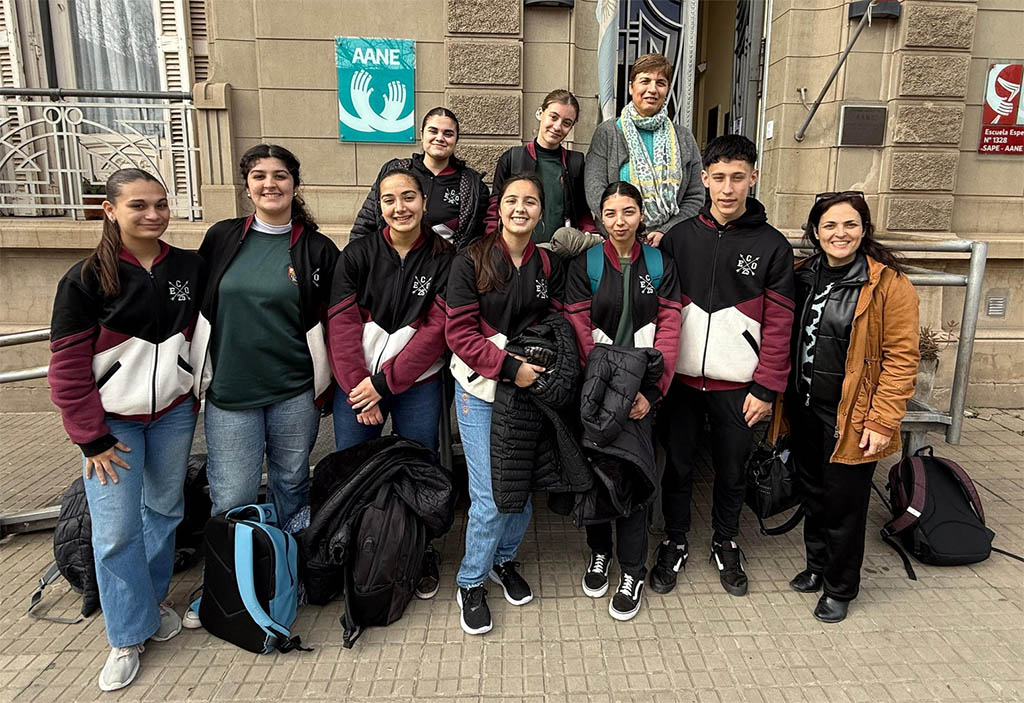 Los alumnos acompañados por la directora Prof. Paola Rodríguez, se acercaron hasta sus instalaciones para hacer entrega del aporte que fue recibido por la Coordinadora de servicios de AANE, María Eugenia Aquino.