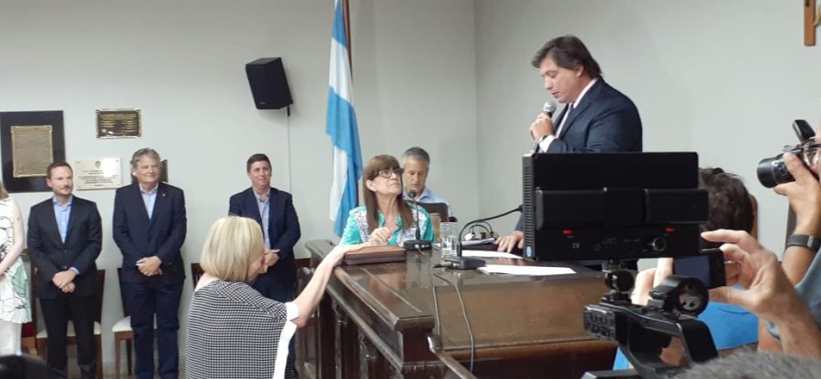 Es la primera mujer que ejerce ese cargo en la ciudad y el primer intendente que gobierna por una cuarto período consecutivo. Juró en el Concejo Municipal acompañada por su gabinete, el senador Rubén Pirola, el vicegobernador Carlos Fascendini y el ex intendente Rafael De Pace.