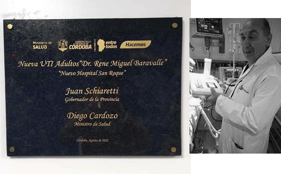 Se trata del Hospital San Roque de Córdoba cuya nueva sala de terapia intensiva fue denominada "Dr. René Miguel Baravalle" en homenaje al profesional médico tan recordado en ese centro de salud y que falleciera hace poco tiempo.