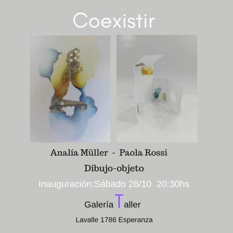 Este sábado 28 de octubre a las 20:30 se realizará la inauguración de la nueva propuesta presentando la muestra "Coexistir" de dibujos y objetos de las artistas Analía Müller y Paola Rossi. Será en Lavalle 1786.