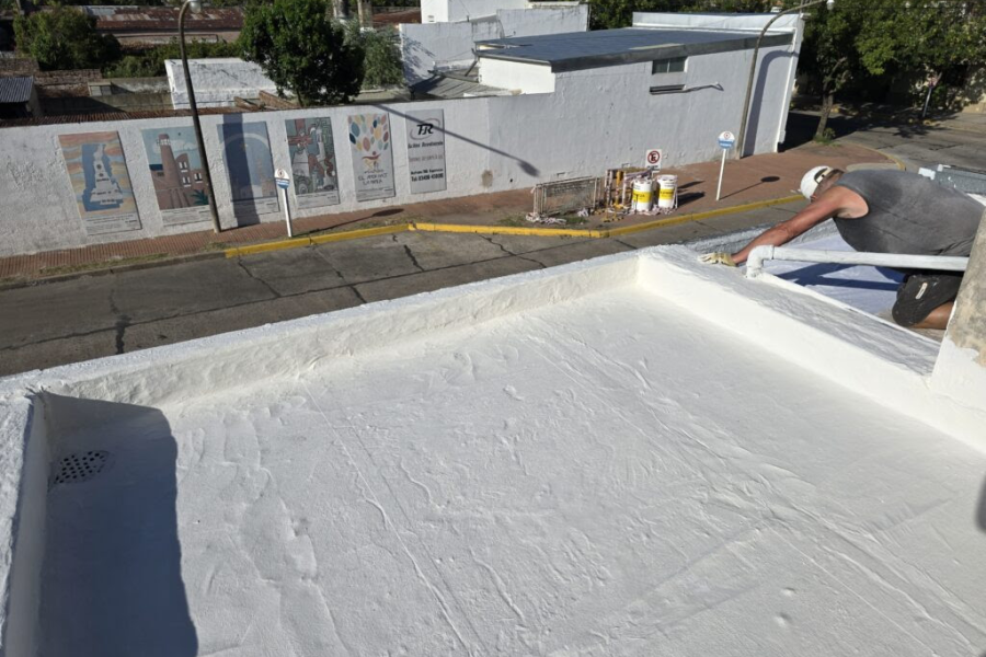 Las tareas incluyen la impermeabilización de la losa de hormigón armado, colocación de puertas y ventanas, trabajos de mampostería en el pasillo de ingreso y en los sanitarios, instalación de cielorrasos, renovación de pisos y colocación de nuevos artefactos sanitarios.
