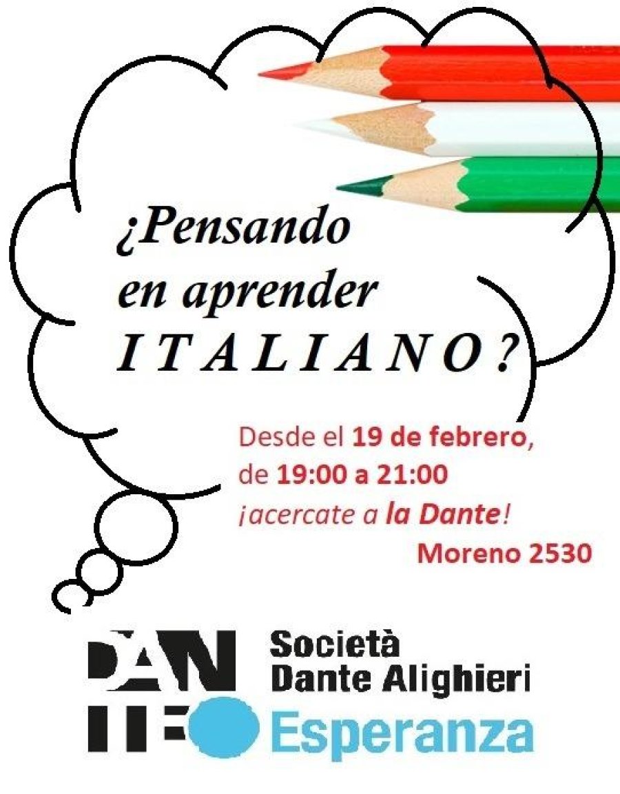 La Asociación DANTE ALIGHIERI DE ESPERANZA informa que en el Ciclo Lectivo 2024 se dictarán los siguientes cursos: