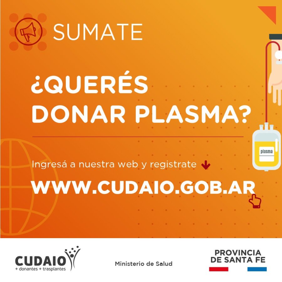 Si te recuperaste de covid-19 podés donar plasma y ayudar a quienes están cursando la enfermedad. Ingresando a la web de CUDAIO www.cudaio.gob.ar vas a encontrar todo lo que necesitás saber y el formulario web para registrarte como donante.