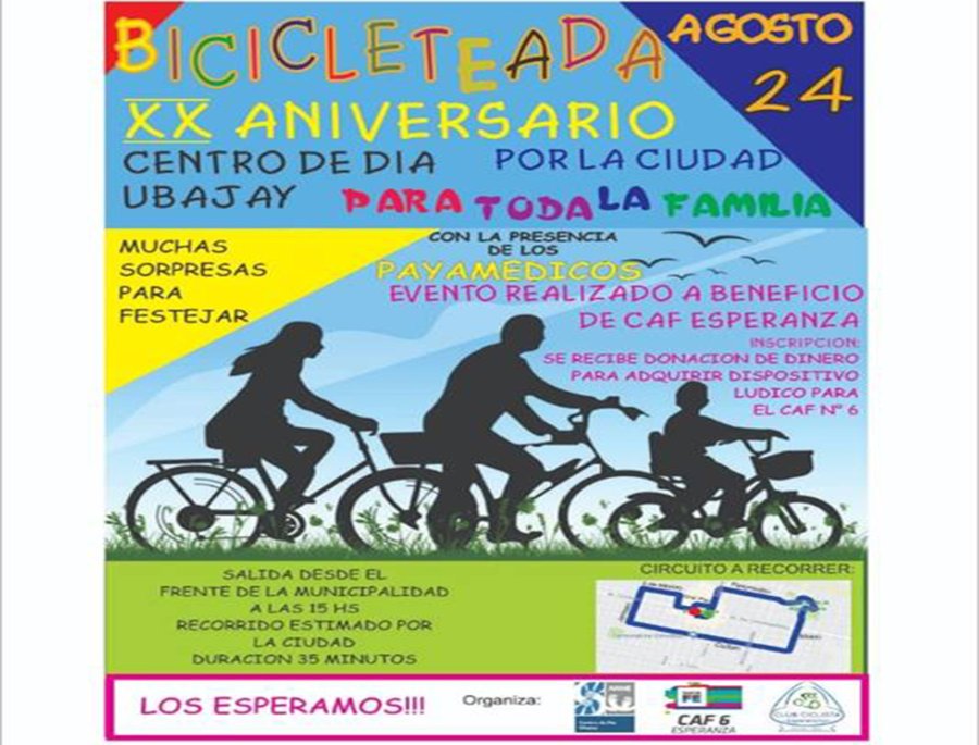 La bicicleteada XX Aniversario del Taller Ubajay será a beneficio del CAF