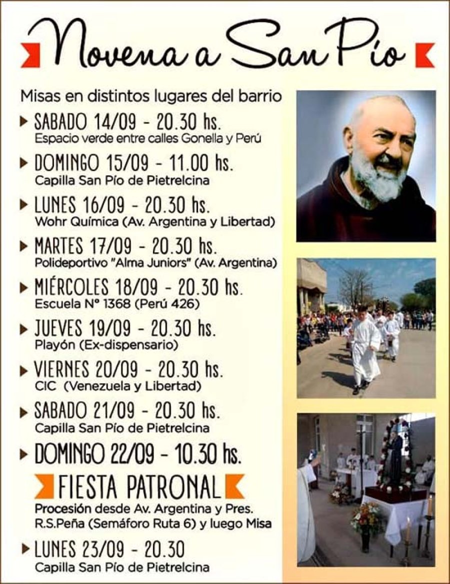 El sacerdote destacó que “San Pío es un santo contemporáneo, que murió en 1968, hace relativamente poco, que tenía los estigma de Jesús y que en su visa se dieron muchos milagros” por lo cual invitó “a los vecinos a que pongan alguna intención en sus manos y se anime a participar activamente de la novena, llevando esa intención que pude ser por alguna necesidad particular o en acción de gracias”. “San Pío es un santo que inspira mucha devoción y que va creciendo”, acotó.
