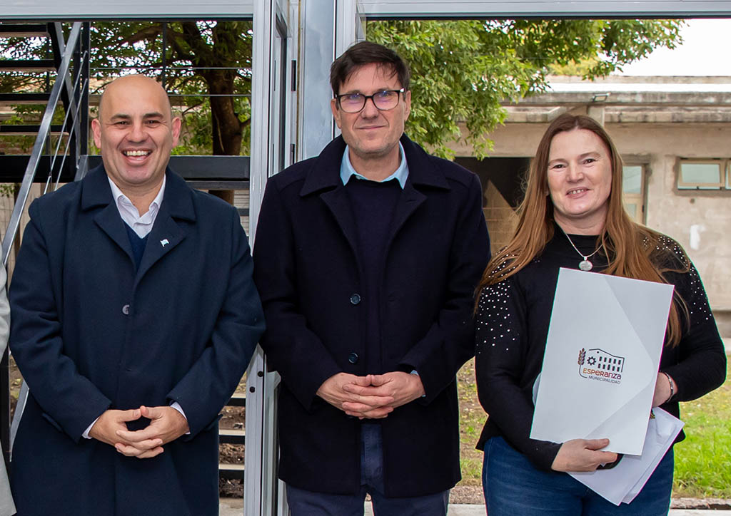 Müller, Goity y Ernst en el acto realizado ayer Crédito: Prensa Municipalidad de Esperanza
