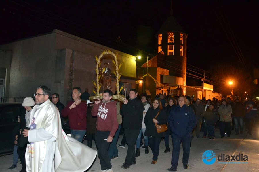 Se realizaron tres misas durante el día, una a la mañana, otra a la tarde y la celebración central fue a las 20 con procesión previa por las calles del barrio en una fría noche de invierno.