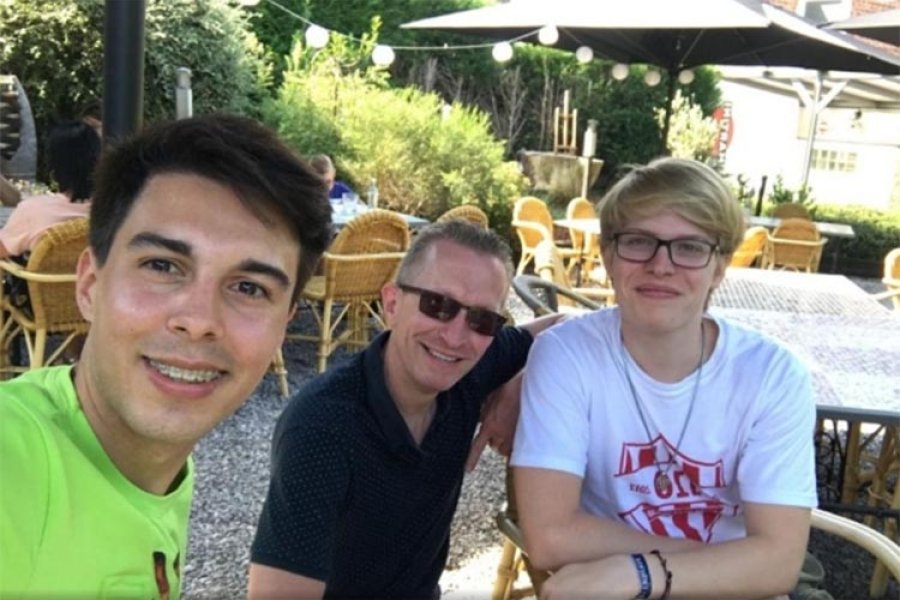 Se lo consultó por un ídolo de Unión y contó: "Yeimar (Gómez Andrade), era muy bueno". En la imagen se lo ve junto a su padre en Bélgica y junto a "Nacho" Trod, otro joven que en su momento accedió al programa de intercambios de Rotary Club desde Esperanza y que hoy se encuentra de manera particular viviendo en ese país para desarrollar una carrera profesional.