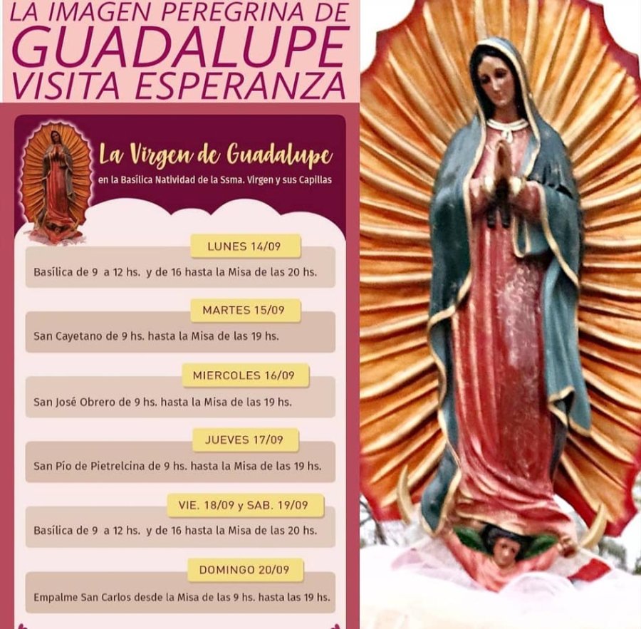 La recorrida de la Imagen Peregrina de la Virgen de Guadalupe sigue recorriendo los templos de la ciudad y este lunes de 9 a 12 y de 16 hasta la hora de la misa (20 hs) podrá ser visitada en la Basílica Natividad.