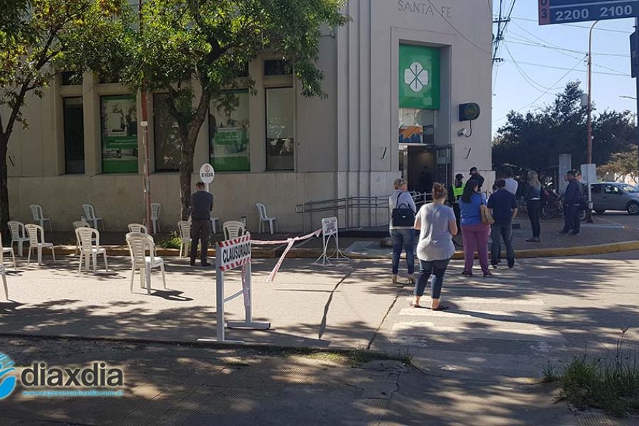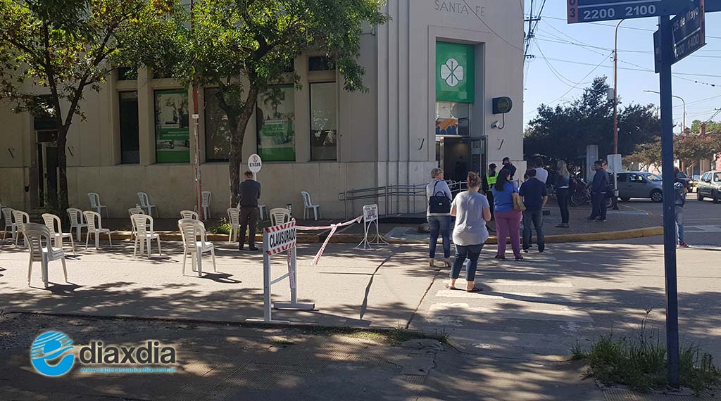 El municipio dispuso corte de calles frente a Banco de Santa Fe (Belgrano al 2200) y Banco Nación (Avda. Colonizadores al 1300) e instaló sillas para que los abuelos que debían ingresar esperen en ese lugar. Sin embargo frente a esas entidades bancarias las únicas colas que se mantenían eran las del público que esperaba ingresar al set de cajeros automáticos.