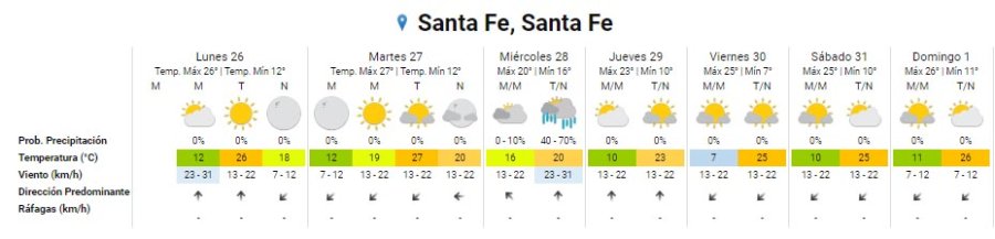 Se espera una semana con buenas condiciones del tiempo y alguna inestabilidad para el miércoles. Desde el 27 de abril que no se registraba en la ciudad una lluvia superior a los 70 mm. Con el registro del domingo el mes de octubre logró superar los 100 mm de precipitaciones.