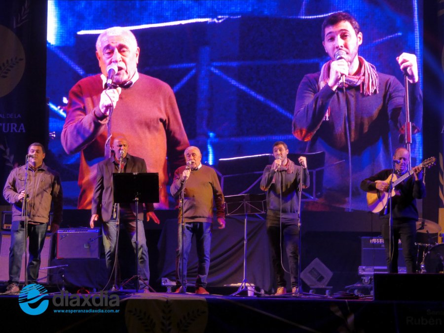 Tras los discursos se interpretó la canción homenaje “A los Primeros Pobladores de Esperanza” por coros de niños de las escuelas primarias de nuestra ciudad, entregaron los premios a las vidrieras de los comercios que se inscribieron en el concurso y distinguieron a la Sociedad Rural Las Colonias y en nombre de esta al productor Ramón Baravalle, por su incansable trabajo por la ciudad y la producción.