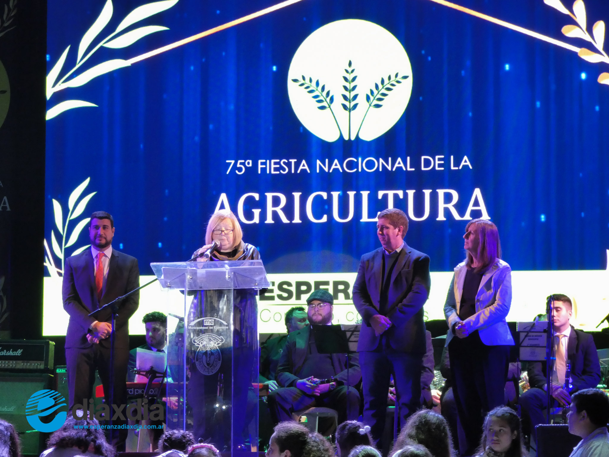 Luego la intendente municipal fue la única oradora institucional. Le dio la bienvenida a todos, agradeció la participación del público y de todos los que hacen la Fiesta de la Agricultura e insistió en el trabajo compartido para engrandecer la ciudad: "Con todo, con todos" reiteró como slogan de campaña.