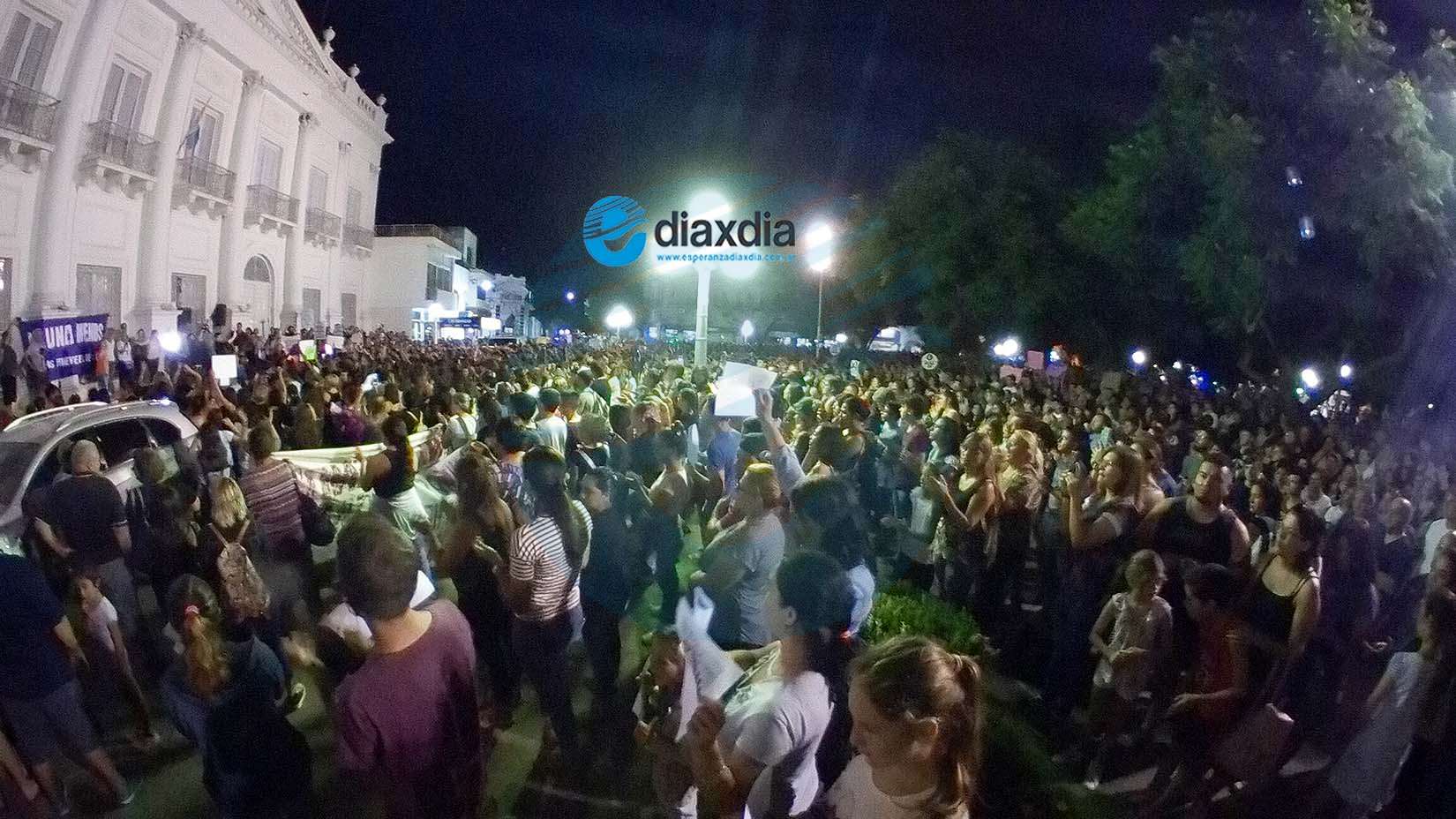 Se realizó esta noche en Esperanza una movilización multitudinaria en Plaza San Martín que pasó por la sede de la Fiscalía Las Colonias y terminó frente al municipio.