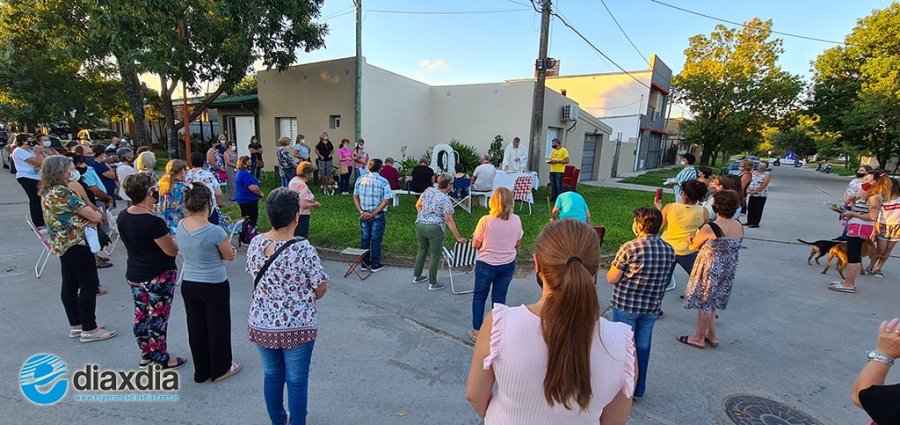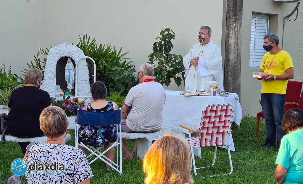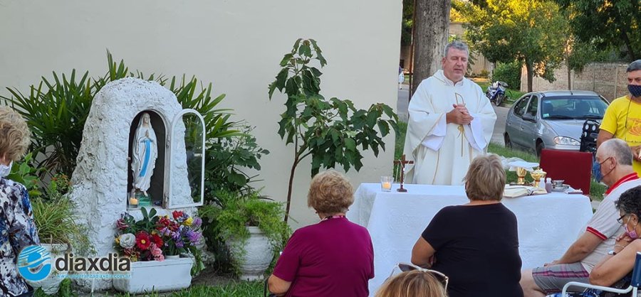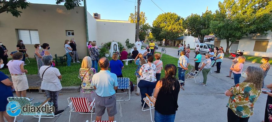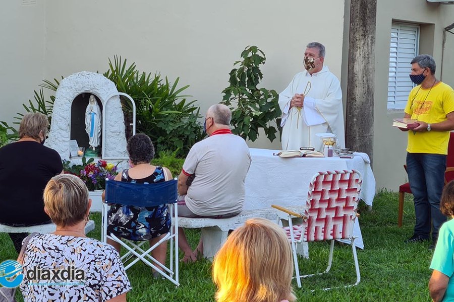 Primero los fieles participaron del rezo del Santo Rosario junto a la Ermita de la Virgen de Lourdes ubicada en la esquina de Nicolás Schneider y Pringles mientras la gente se seguía sumando.