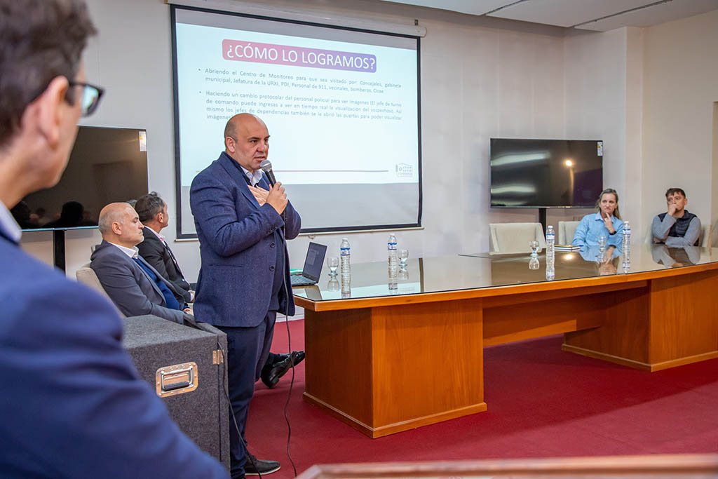 El intendente de Esperanza, Rodrigo Müller, participó este miércoles en el Encuentro de Seguridad para el Área Metropolitana Santa Fe exponiendo sobre los avances en el Centro de Monitoreo Municipal desde el inicio de su gestión.