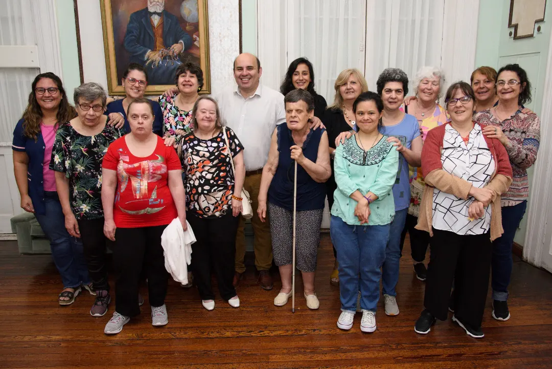El intendente de Esperanza, Rodrigo Müller, acompañado por la secretaria de Desarrollo Humano, Florencia Blanche, recibieron este lunes a directivos, personal y residentes del “Hogar Compromiso Beatriz Rava De Platinetti”, una asociación civil dedicada a albergar a jóvenes y adultas con discapacidad.