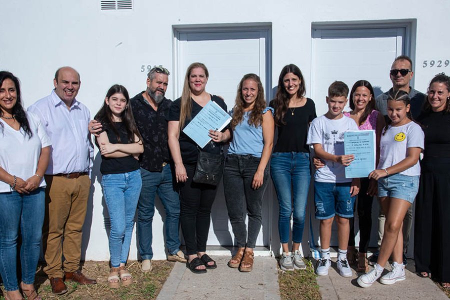 El intendente Rodrigo Müller presidió este viernes el acto de entrega de dos unidades habitacionales ubicadas en barrio La Orilla que fueron contruidas por el Instituto Municipal del Hábitat desde un programa de financiamiento local que comenzó en el año 2008.