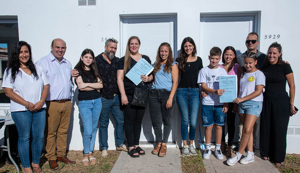 Las casas entregadas corresponden a las unidades 17 y 18 de 32 casas que se proyectaron construir. Durante el acto el escribano Mario Bianchi firmó y entregó las escrituras a los nuevos beneficiarios.