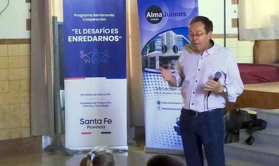 El presidente de la Mutual Alma Juniors, Eduardo Schmittendorf, brindó detalles del Programa “Sembrando Cooperación: el desafío es enredarnos”, que se realiza en las escuelas de la ciudad para dar a conocer los valores del mutualismo entre los más chicos.