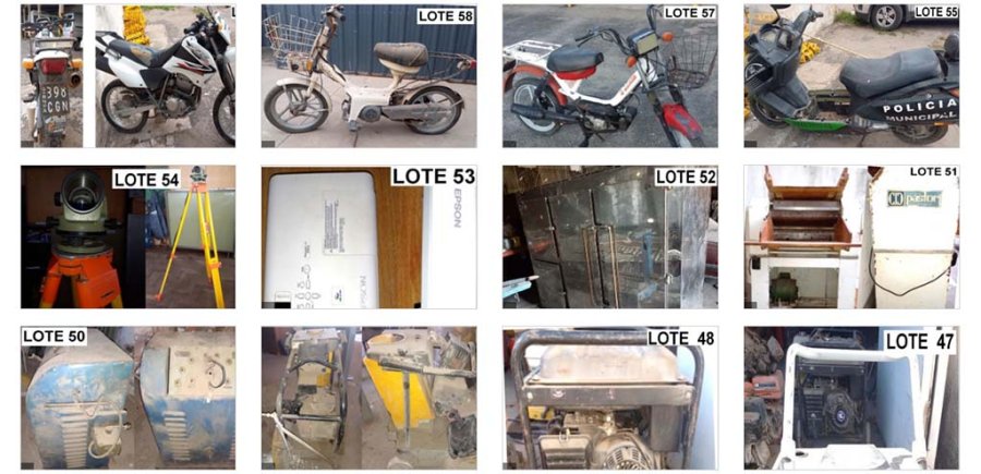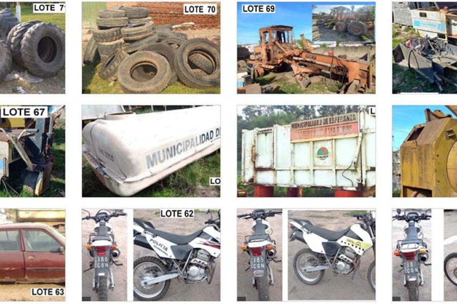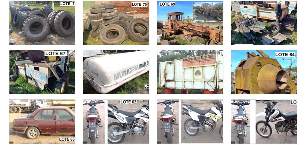 Será el próximo viernes 18 de noviembre desde las 9. Hay más de 70 lotes diferentes que se rematarán desde una motoniveladora pasando por una hormigonera, maquinas cordón cuneta, auto, motos, motores a explosión, máquinas de cortar pasto, heladera de 4 puertas, generadores, soldadoras y cubiertas.