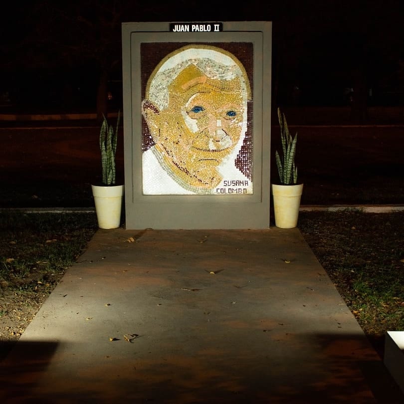 Utilizando la técnica de mosaiquismo desarrolló una especial obra donde se puede apreciar la figura de Juan Pablo II que quedó plasmada en un espacio público del barrio que lleva el nombre de quien fue el papa 264 de la Iglesia católica y soberano de la Ciudad del Vaticano desde el 16 de octubre de 1978 hasta su muerte en 2005.