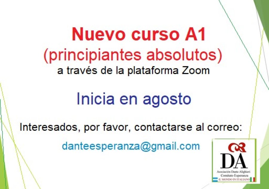 Será desde este mes de agosto dictado por la Escuela de Idioma y Cultura Italiana Dante Alighieri de Esperanza.
