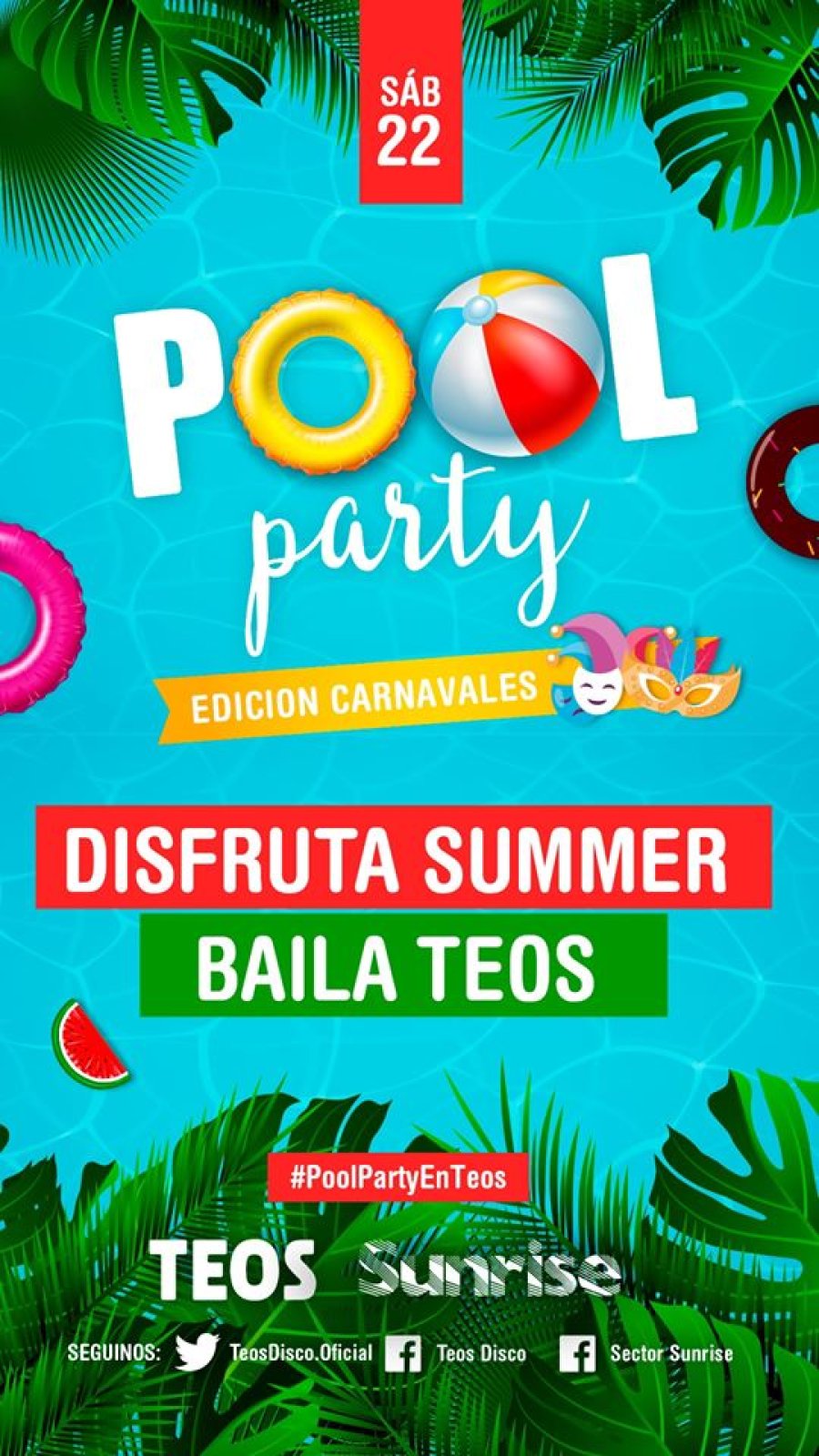 Esta noche "Pool Party" en Teos Disco Esperanza con una fiesta de carnaval muy especial.