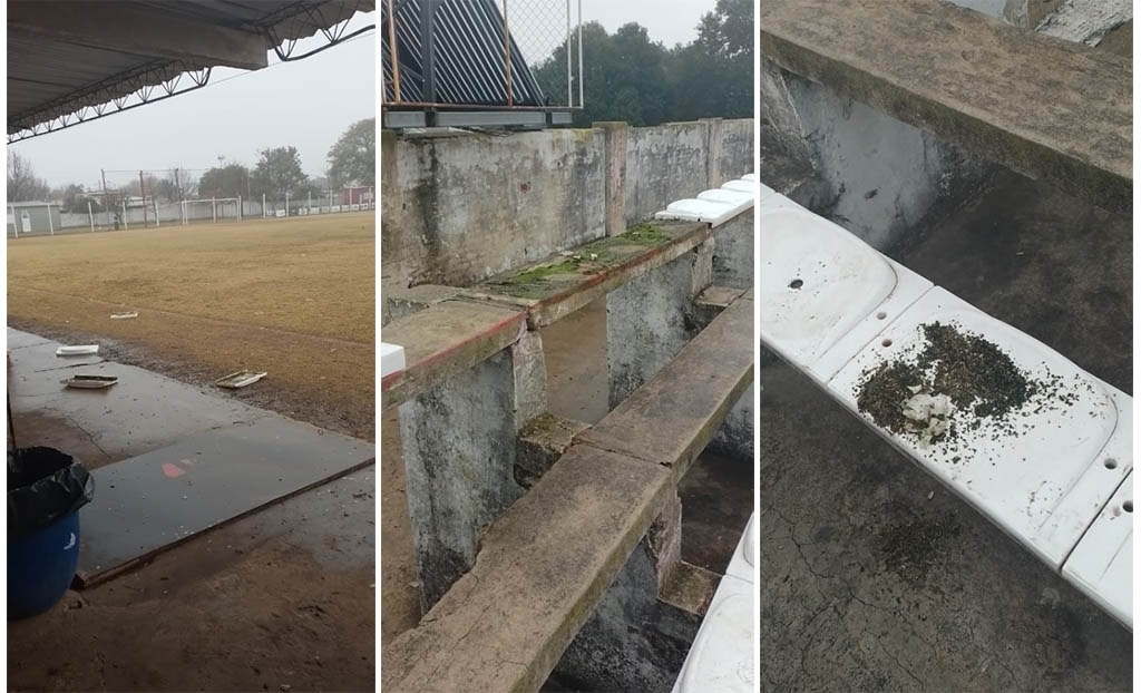 No sólo rompieron plateas plásticas, las retiraron de sus emplazamientos y las lanzaron al campo de juego. Esto produjo el alerta de los voluntarios trabajadores del club que en la mañana del domingo advirtieron las novedades al llegar al campo de juego y encontrar plateas tiradas en el lugar.