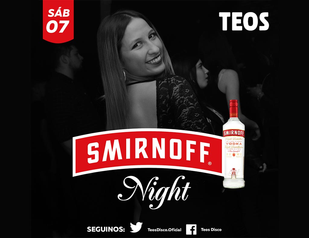 Agrandar imagen Enviar Imprimir Otro sábado para celebrar en cada sector del Gigante Teos Disco prepara una nueva noche a pura diversión con Smirnoff nightt en promo durante toda la noche.