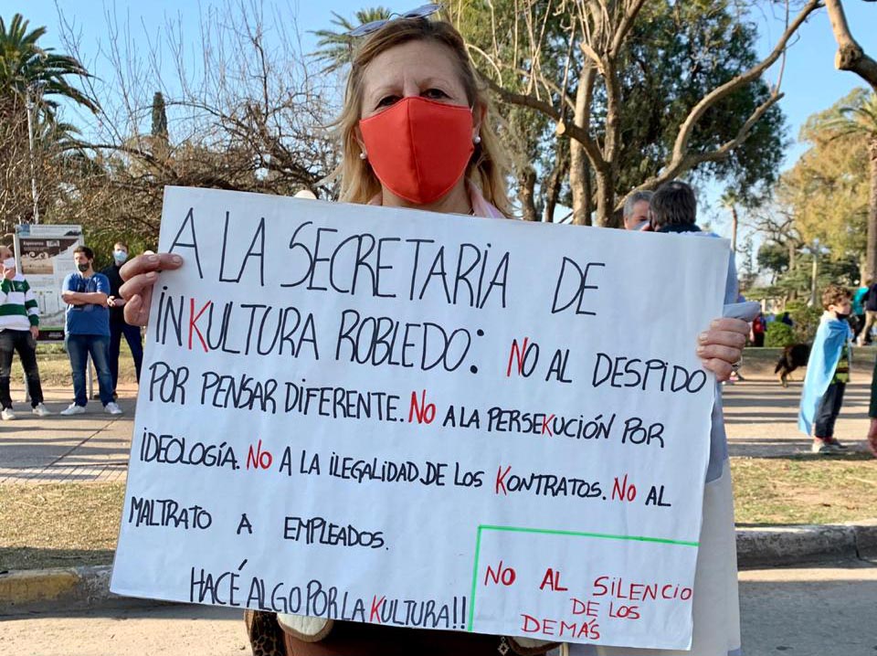 También pudimos observar algunos reclamos locales. Esta ex docente del Liceo Municipal José Pedroni no ocultó su impotencia y bronca por lo que se entiende fue un despido "por pensar diferente" acusando directamente a la Secretaria de Cultura y Deportes de la Municipalidad de Esperanza, Adriana Robledo.