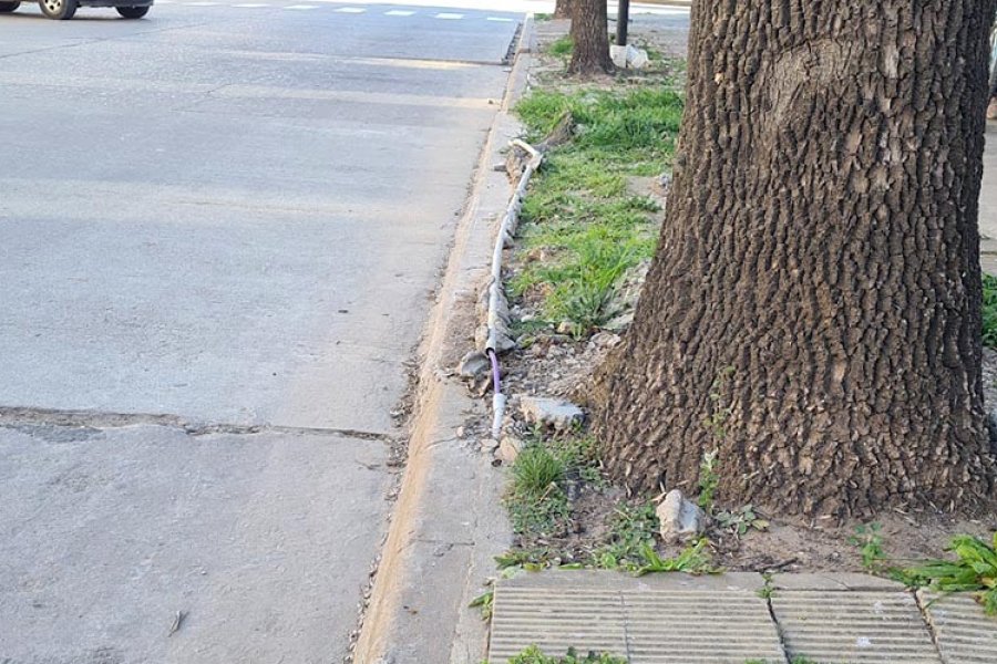 Quizás se trate de un simple trabajo de mantenimiento que busque colocar en el cantero la instalación y controlar que en otros lugares del centro de la ciudad el caño que contiene el cable ya dejó de ser invisible.